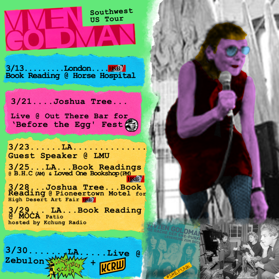 As of late, she has 2 LP's, a 7-inch, and a re-press of her hit book & musical compilation 'Revenge of the She-Punks' on vinyl as well as new editions of the book in English, Spanish and Portuguese. Her latest books 'The Black Chord' and 'Scribe on a Vibe' are out now on Hat & Beard in the US and White Rabbit in the UK. Cadiz Music, Youth Records & Crass Lips are currently working on a remix album that includes remixes of her songs from friends Denardo Coleman, Marius DeVries, Jordan Bovell, Joaquin Claussell, Nathaniel Eras, Roderick Edens, Admiral Grey and many more. Her music was also recently used on HBO The Deuce and a song she co-wrote appears several times throughout the closing episode of the massively popular globally TV series 'Murder in Paradise'. The remix album will be accompanied by 5 new music videos, which can be previewed by the press upon request.